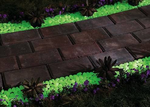 Как пример, я сделал дачные аллеи светящимися в темноте, выложив их светящимися камушками и плитняком (его еще называют «пластушкой»).