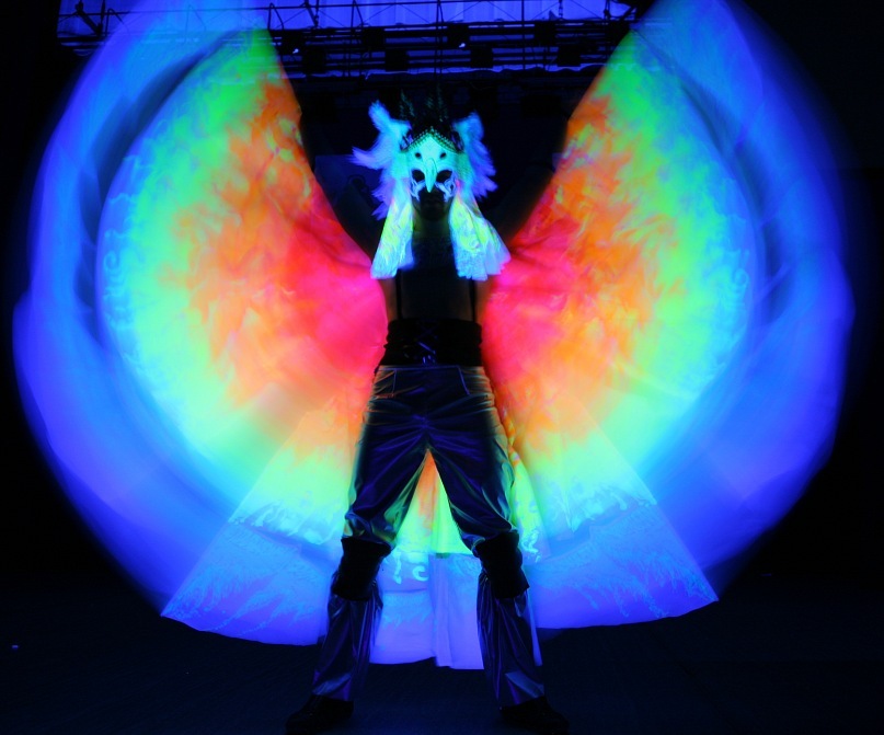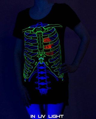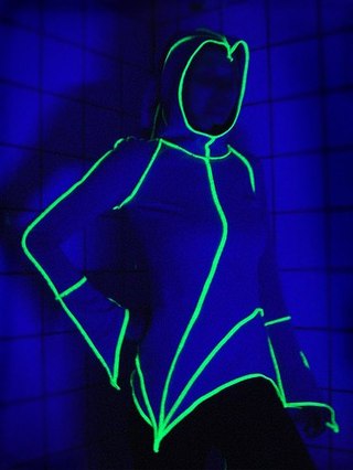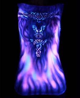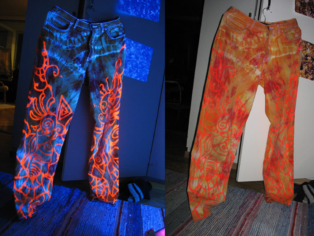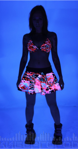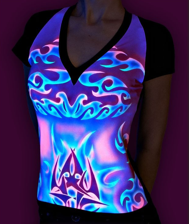 Светящаяся кислотным цветом одежда за несколько десятилетий стала полноценным атрибутом любых ночных танцполов, как, например, светомузыка. Образовав своеобразный культ, флуоресцентная краска для ткани, светящаяся в ультрафиолете, стала чем-то большим, чем просто обычное лакокрасочное покрытие. Это своеобразный возглас молодости, ночной жизни и постоянного веселья.