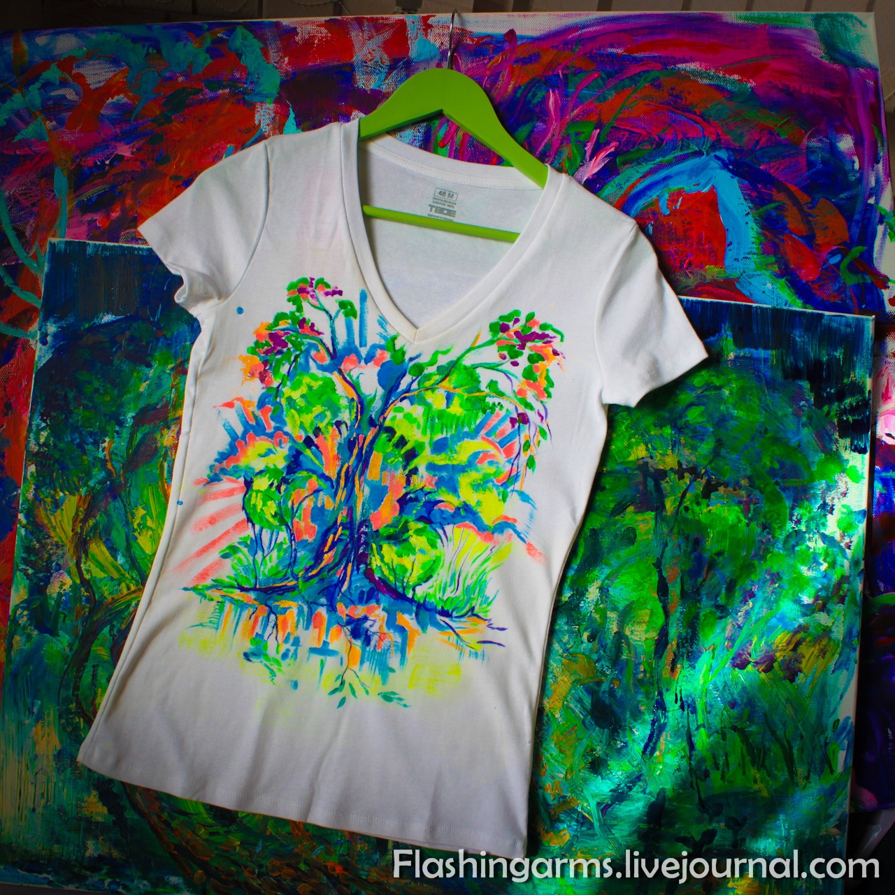 Роспись предметов интерьера и сувениров – это лишь небольшая сфера, в которой краска с эффектом флуоресценции стала хлебом с маслом каждого второго дизайнера. Ключевая отрасль, в которой такое покрытие пользуется широчайшим спросом – это дизайн одежды. В частности, это – футболки, платья и шорты.